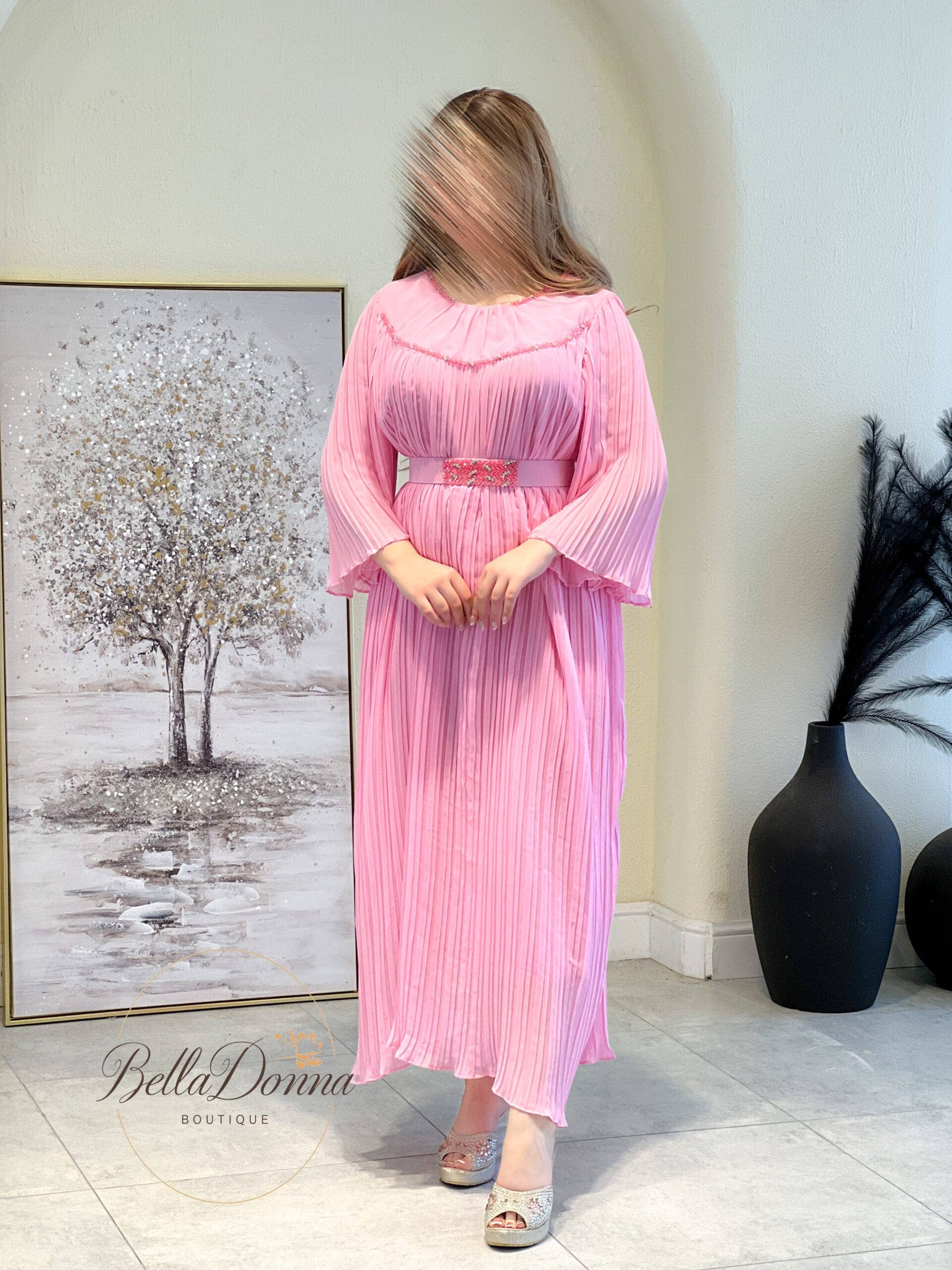تميزي بأناقة ناعمة مع هذا الفستان الوردي الساحر