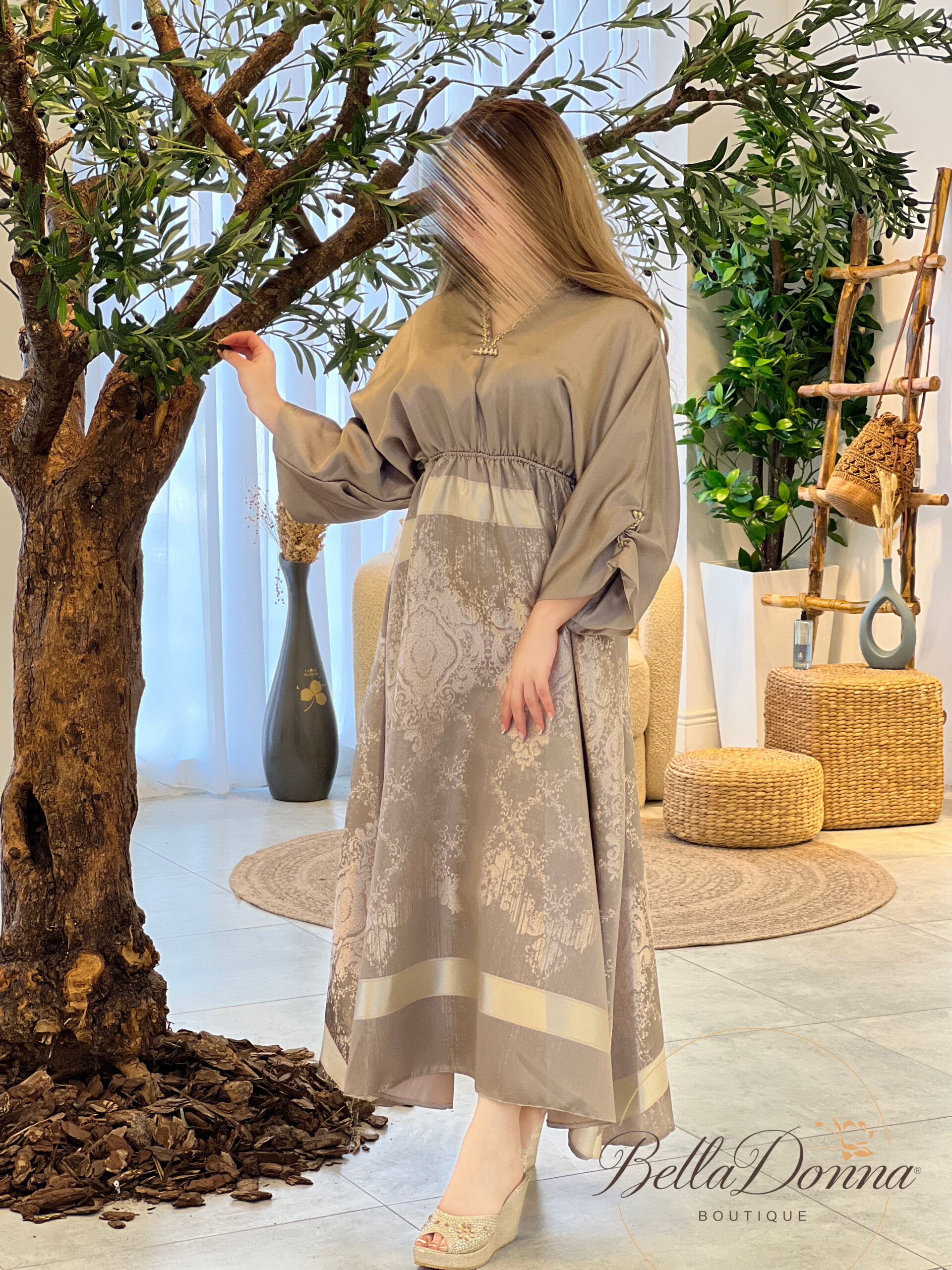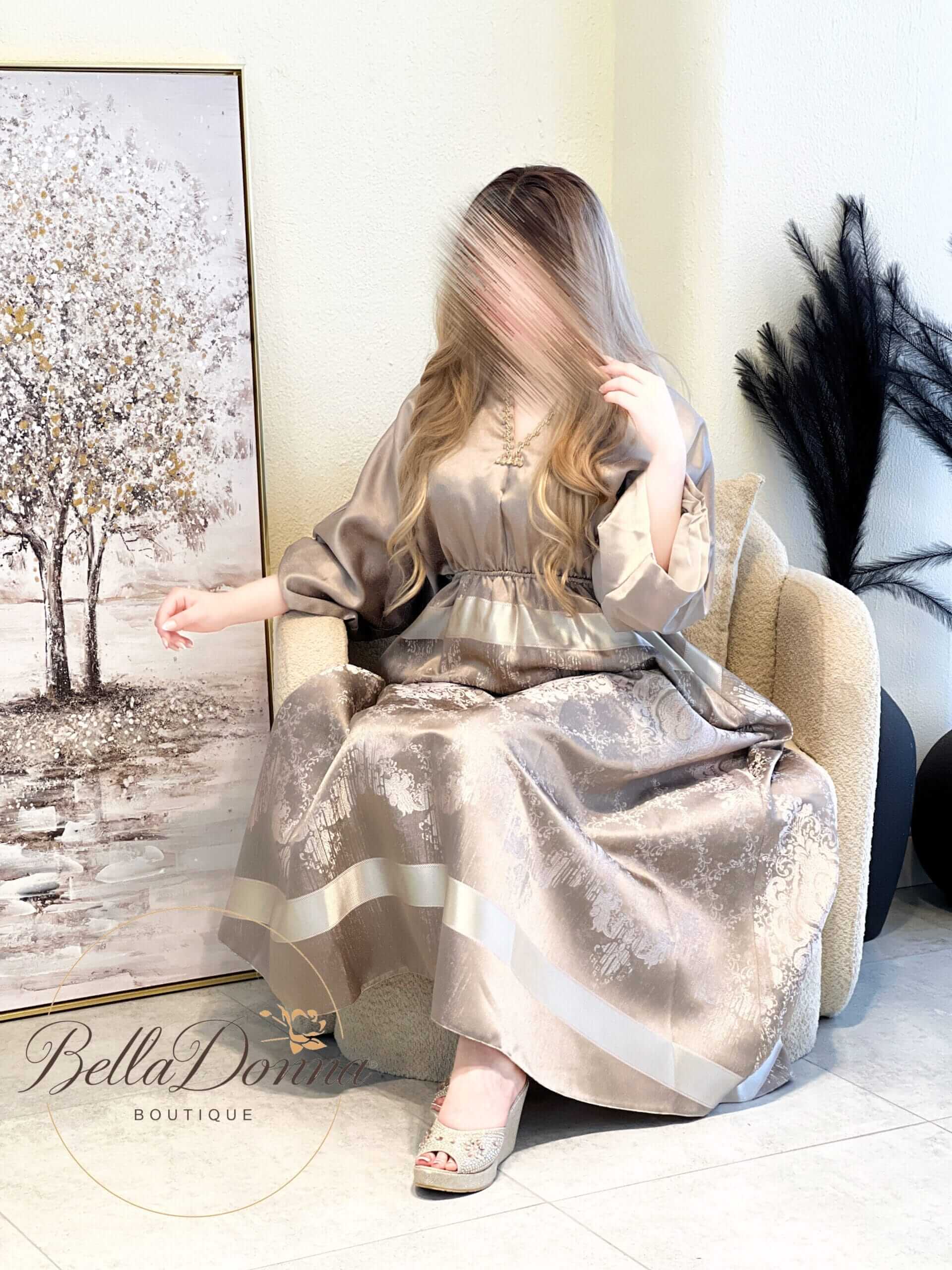 📌 تصميم واسع ومريح من قماش ساتان لامع مع نقوش راقية وتطريزات ناعمة.